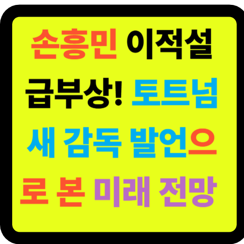 손흥민의 토트넘 이적설이 다시 한번 축구팬들의 관심을 모으고 있습니다. 새로 부임한 토마스 프랭크 감독의 의미심장한 발언과 함께 손흥민의 거취에 대한 추측이 무성한 상황입니다. 10년간 토트넘에서 활약한 손흥민이 과연 새로운 도전을 선택할 것인지, 아니면 토트넘에 남아 더 큰 영광을 만들어갈지 주목됩니다. 🤔