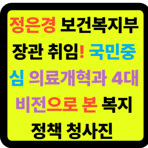새로 취임한 정은경 보건복지부 장관이 의료개혁과 복지정책의 새로운 방향을 제시했습니다. 국민중심 의료체계 구축을 핵심으로 하는 정은경 장관의 4대 비전은 사회안전망, 돌봄 국가책임, 보건의료 혁신, 미래 복지 강국 기반 마련입니다. 비대면진료 제도화부터 의료인력 확보, 아동수당 확대까지 포괄적인 보건복지 정책 개편이 예고되고 있어 국민들의 관심이 집중되고 있습니다. 🌟