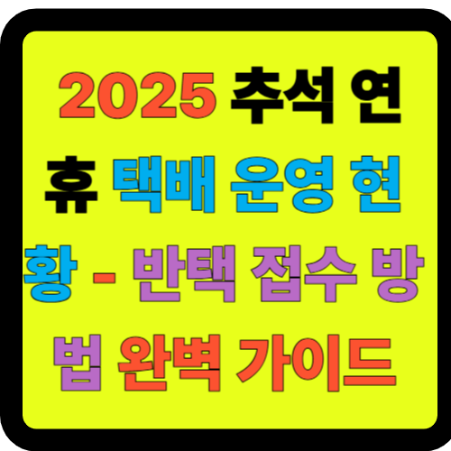 2025년 추석 연휴는 최장 10일! 택배사별로 휴무 일정이 다릅니다. CJ대한통운, 한진, 롯데, 로젠 택배의 휴무일과 배송 재개 날짜를 확인하세요. 반택(반품 택배)은 GS25 편의점을 통해 연중무휴로 접수 가능합니다. 명절 연휴에도 택배 보내는 꿀팁을 알려드려요!